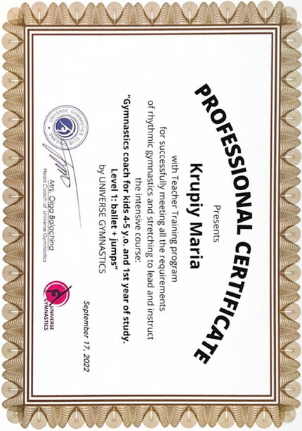My name is Mary, and my journey in movement began at the age of three with rhythmic gymnastics — a discipline that shaped my body and cultivated inner balance. After fifteen years of training, I earned the title of Master of Sport in Ukraine, a foundation that continues to guide my work today.